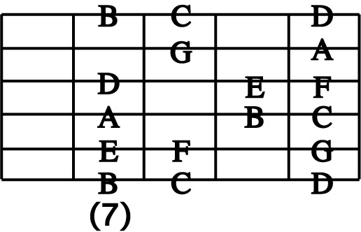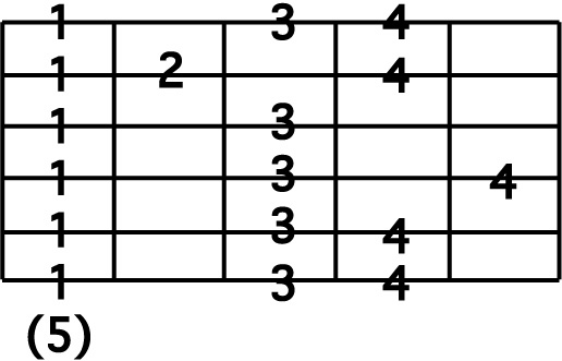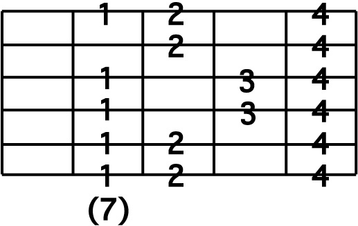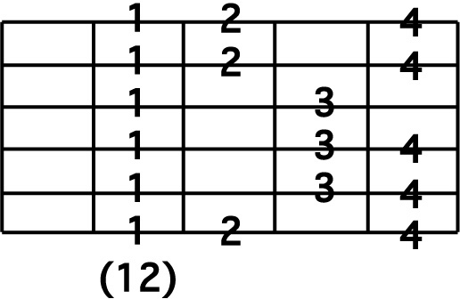 STEP 1 : C Major 5 Position Position 12 ( 8th note version ) Position 7 同様に、第1指から第4指まで、ストレッチの無いポジションです。 |