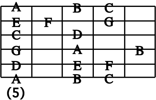 STEP 1 : C Major 5 Position Position 5 ( quater note version ) 音価をしっかり保ってプレイしましょう。 |