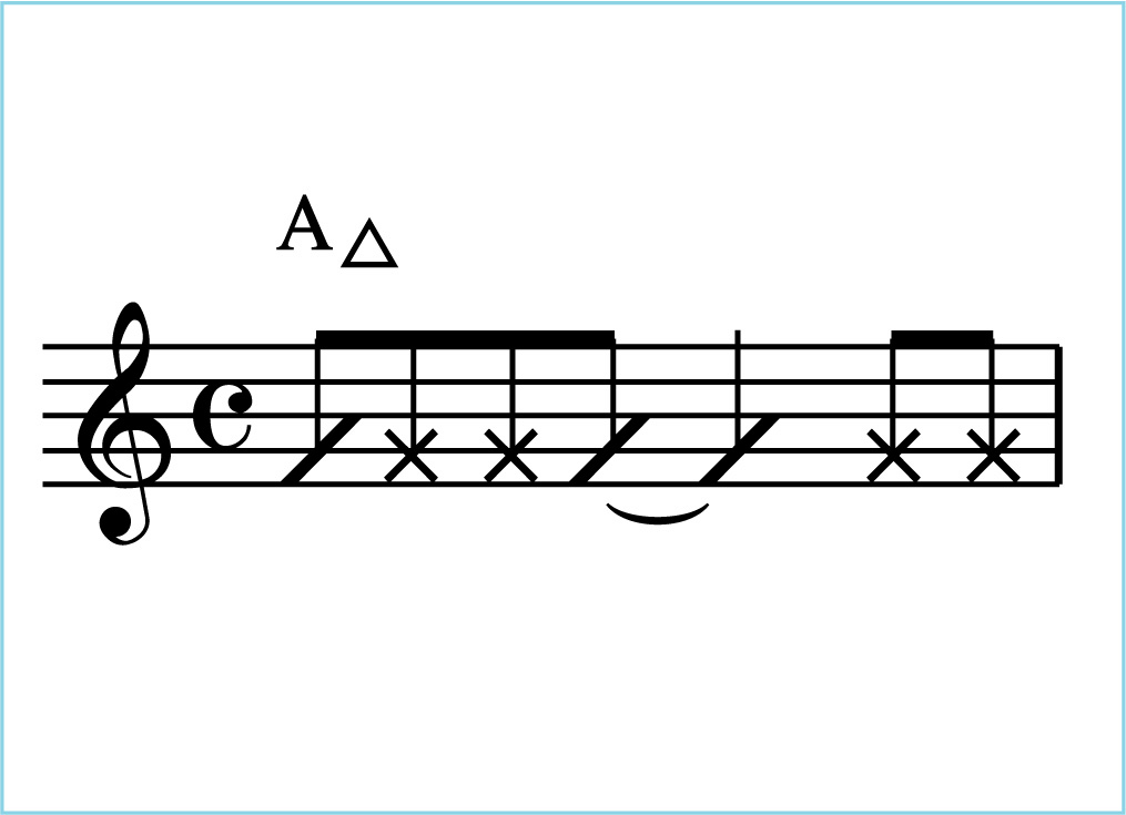 STEP 2 : Key Transpose for Rock I - IV - V ( Key = A ) Tonic(トニック I度)- Sub-Dominant(サブドミナント IV度) - Dominant(ドミナント V度)の、主要3和音を、8Beat Patternに乗せて、 体でおぼえるまで、プレイしよう。 |